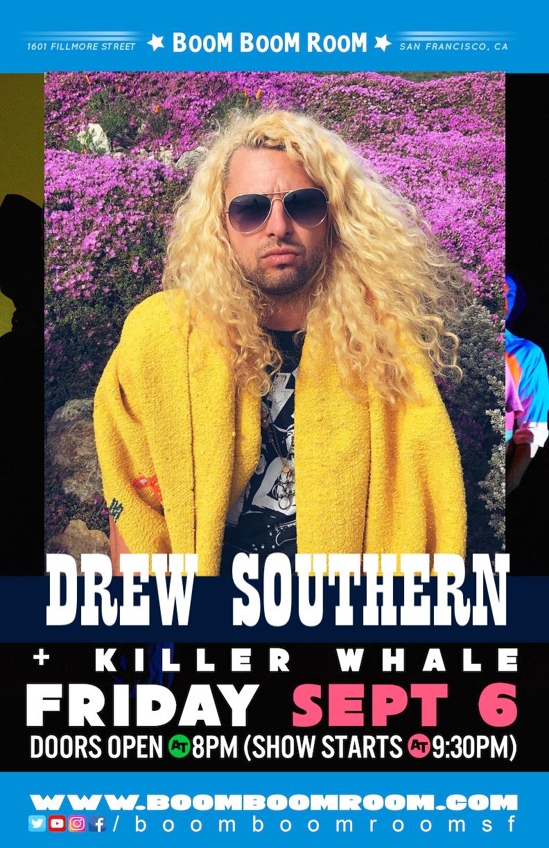 DREW SOUTHERN AND THE VIBE + KILLER WHALE (& DJ K-OS) Buy Tickets DREW SOUTHERN AND THE VIBE + KILLER WHALE (& DJ K-OS) Date:Fri Sep 6 Time:9:15 PM Age:21+ Price:Badazz show! Talent: When: Friday, September 6th 2019 9:20 PM til 3:00 AM Door Time: 8:00 PM Show Type: Live Funk, Soul-Psychedelic, Rockin’ Restrictions: 21 & over ** DREW SOUTHERN & THE VIBE ** plus: * KILLER WHALE * and: * DJ K-OS * DREW SOUTHERN & THE VIBE Drew Southern is a blues, rock, soul band from San Francisco, CA. About Drew Southern: “One of SF’s baddest axe-man, Drew Southern doesn’t need an intro. With a name like that, young cat doesn’t hold back. Whether blues, soul, or rock, keep a fire extinguisher handy because the place will heat up at biblical proportions.” – Gerald Andag, SF blues promoter KILLER WHALE Killer Whale is a project undertaken by Thomas Johnson, a Baton Rouge, LA native, that mixes the histories and melodies of the South with the Bay and the result is something surprisingly reminiscent of the 60’s and 70’s, complete with drawbar organs, introspective lyrics, and guitar riffs that soar above a churning rhythm section. This powerhouse project has been noted as THE up and coming band to watch out for, so come get your groove on! Lineup Media: